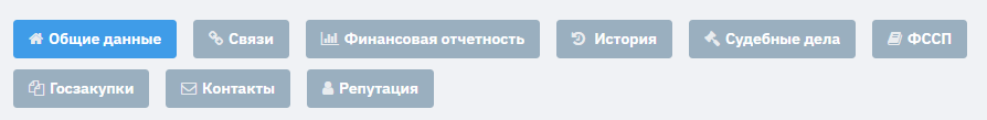 На вкладке “Общие данные” система выдаст основную регистрационную информацию о компании, сведения об учредителях, единоличном исполнительном органе, основные показатели отчетности.