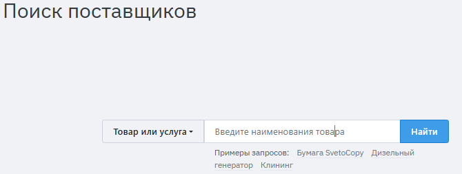В появившемся окне поиска необходимо указать наименование товара или услуги по который необходимо найти поставщика.